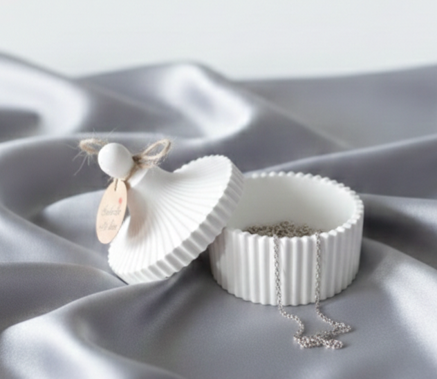 Suchst du nach einem besonderen Ort für deine liebsten Schmuckstücke? Diese exquisite Dose aus hochwertigen Keraflott vereint minimalistisches Design mit sanfter Ästhetik. Mit ihrer seidenmatten Oberfläche und der harmonischen Formgebung ist sie nicht nur eine Aufbewahrung, sondern ein echtes Deko - Highlight für deinen Nachttisch oder Regal.